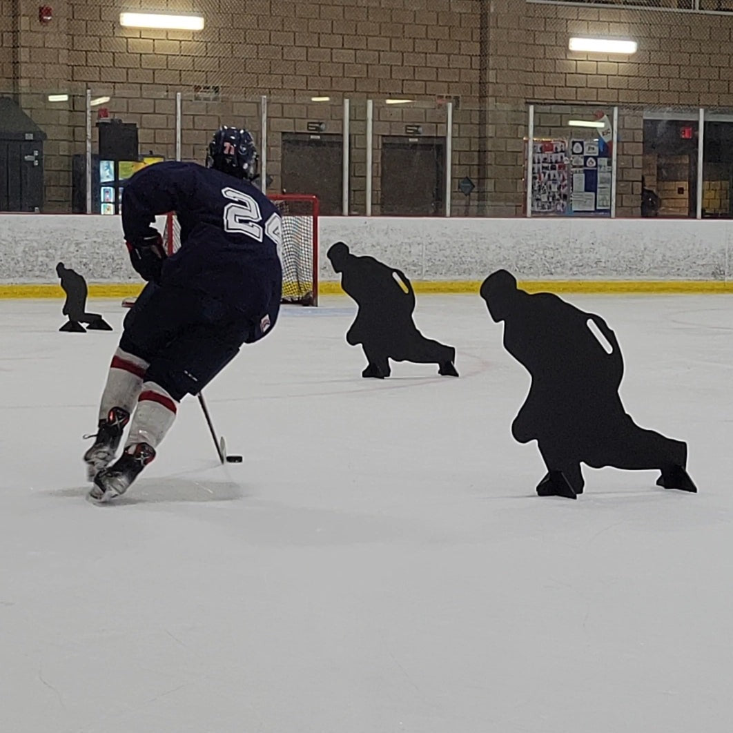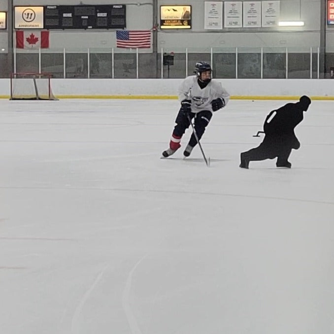I attached a bracket to this and attached it to a hockey stick so I can move it as the players move to shoot around it to make them make quick and better decisions!